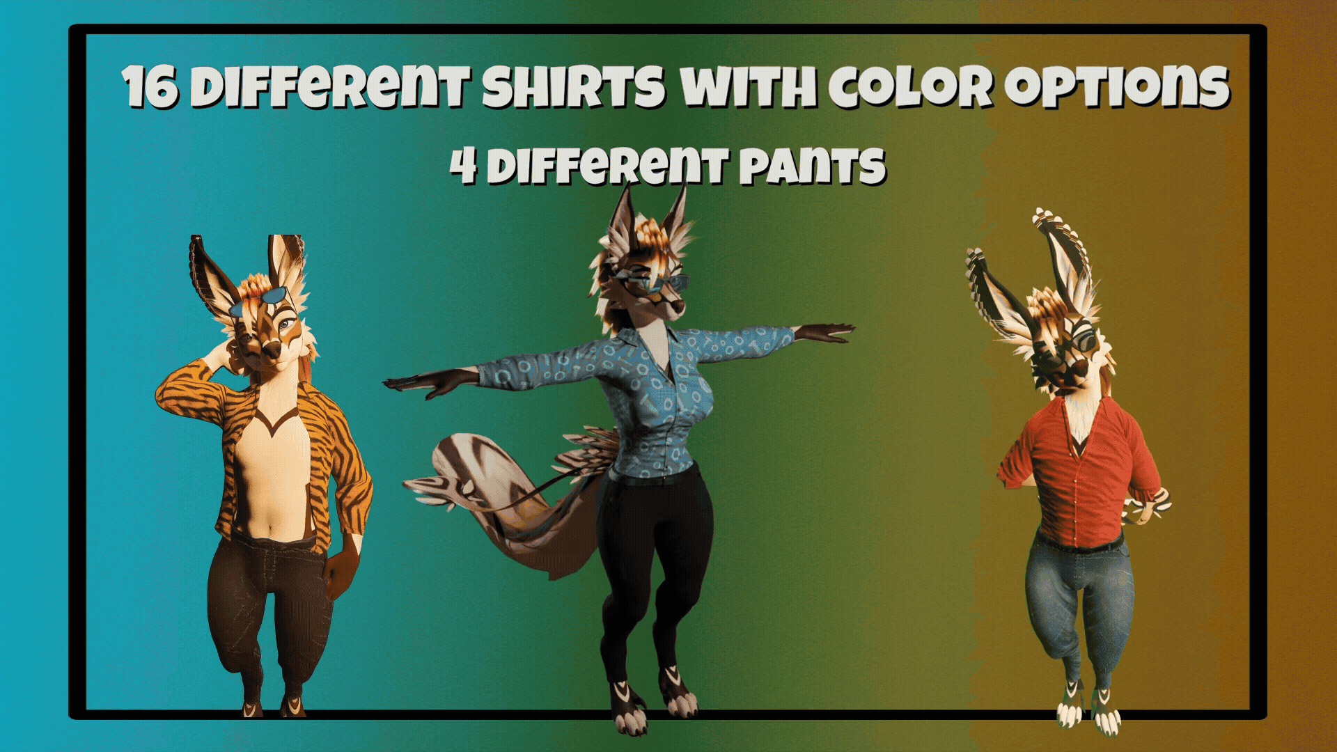 16 different shirt textures and 4 different kind of pants